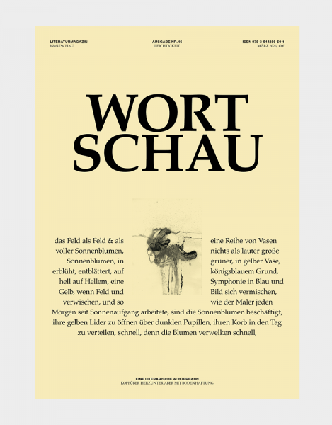 Die 46. Ausgabe der Zeitschrift stellt unter dem Motto Leichtigkeit neue Gedichte von Jürgen Brôcan, Stan Lafleur, Kathrin Niemela, Bess Dreyer u.a. vor. Mit dabei ist auch das Gedicht Twee diewe / Zwei Diebe von Charl-Pierre Naudé in der Übersetzung von Sylvia Geist. Bildender Künstler der Ausgabe ist Christoph Heek.